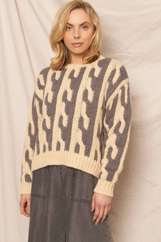 Contrast Cable Knit Sweater