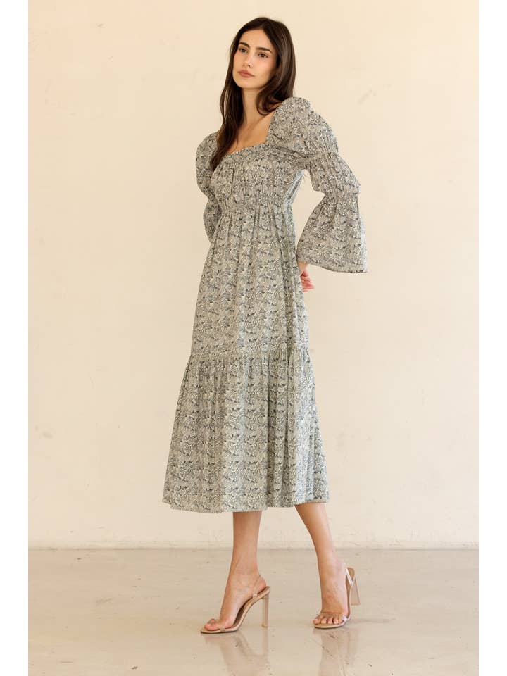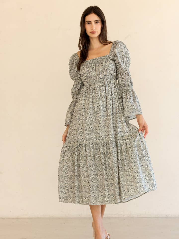 This Floral Tiered Maxi features an all-over vintage-inspired floral print, blending timeless charm with modern design. Its relaxed, flowy fit and tiered midi skirt create a flattering silhouette that moves gracefully. The square neckline, enhanced with elasticized shirring at the bust, ensures a comfortable, secure fit. Voluminous puff sleeves add sophisticated volume, while the slip-on style eliminates the need for zippers, providing effortless wearability. Ideal for occasions that call for elegance and ease, this maxi dress offers both style and comfort.