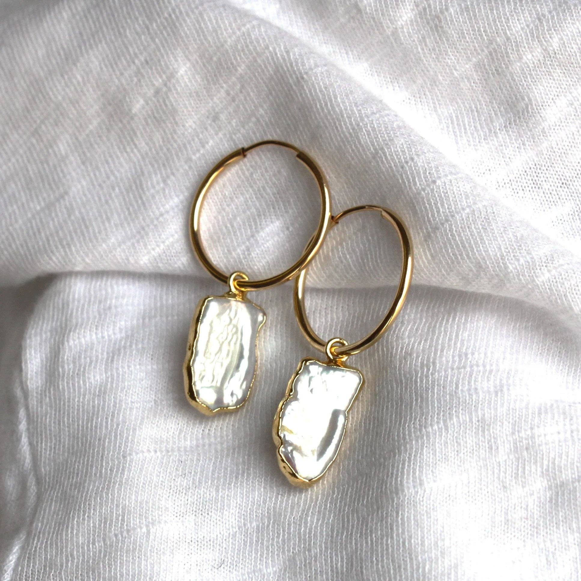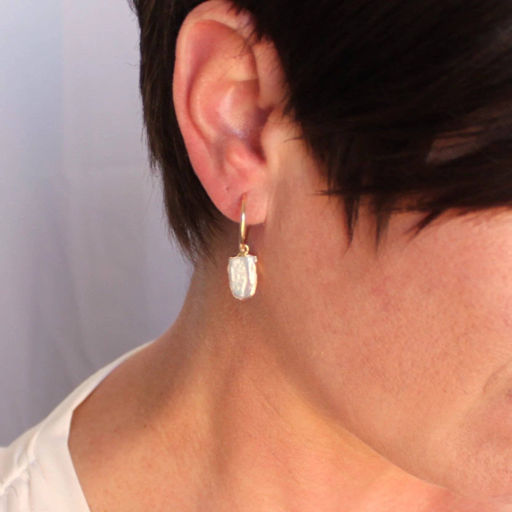 Natural pearl drop •14kt gold filled endless hoops, 16mm