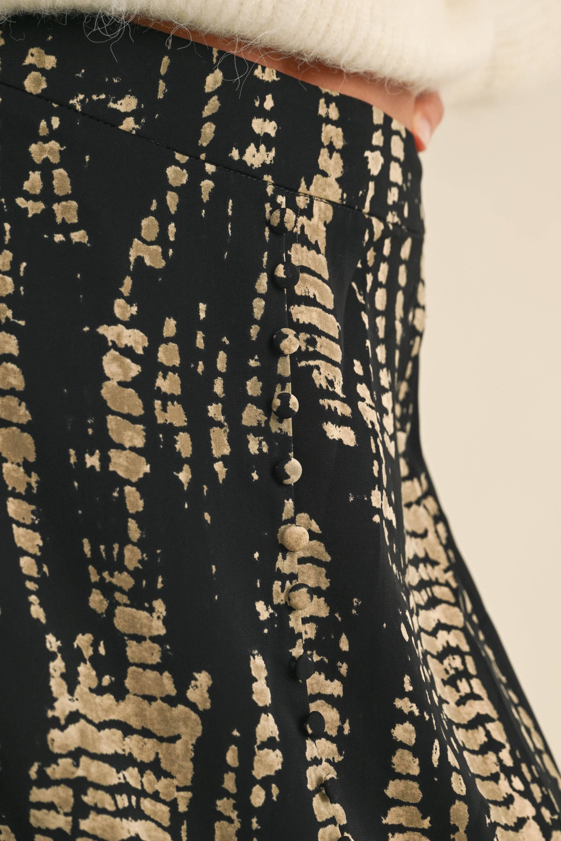 Add some flair to your wardrobe with this stylish Pattern Maxi Skirt! The black and beige pattern adds a touch of sophistication, while the satin material provides a luxurious feel. Perfect for any occasion, this skirt will surely turn heads. (Fashion-forward and fabulous!)