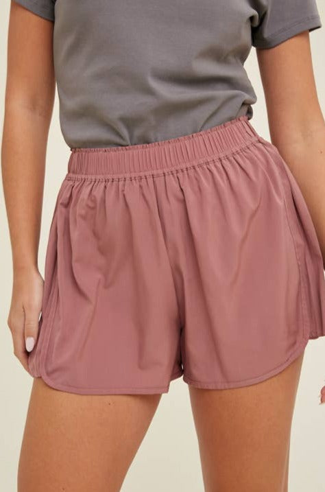 Unleash your inner athlete with these active shorts. The elastic waistband ensures a comfortable and secure fit, while the lining provides extra support. In a vibrant red bean color, these shorts will add a pop of fun to your workout gear. Go from gym to brunch with ease!