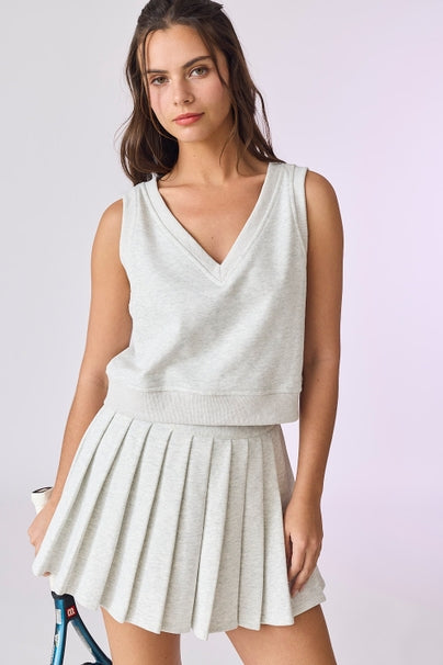 Get ready to hit the court in style with our Serena Matching Set. This chic ensemble features a comfortable sleeveless v-neck top and a pleated skirt, perfect for casual tennis games or leisurely strolls. The soft lavender color adds a touch of elegance to your sporty look.